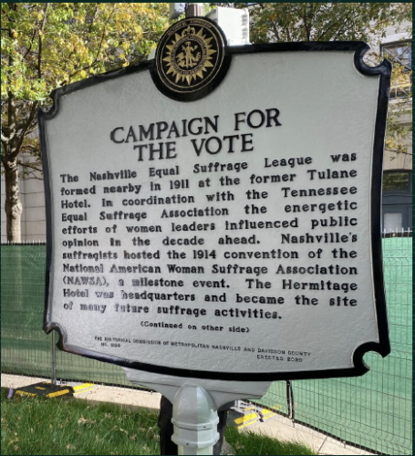 This is a suffrage history site marker near my home in Nashville. I hope the national monument honors women who fought for the vote in every state, like the great women of Tennessee.