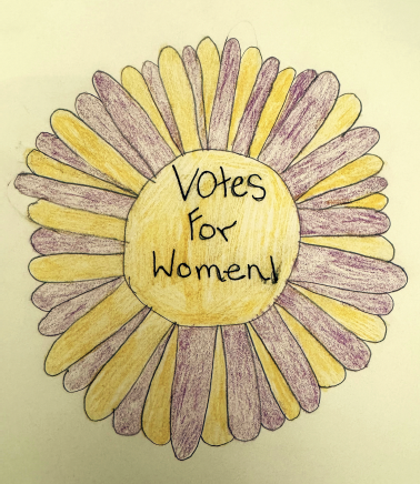 My drawing is of a strong independent woman holding the women's suffrage flag that I feel represents this movement in history and continues to hold true today.